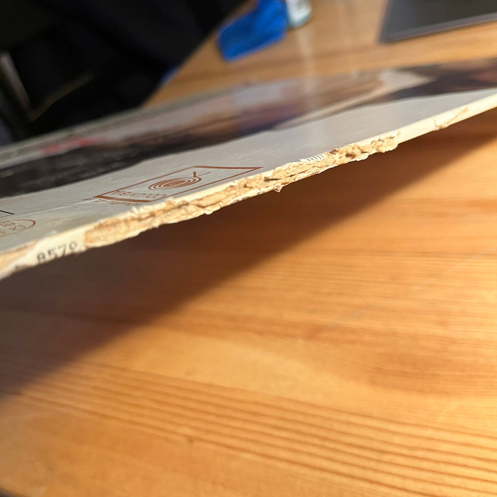 vinyl is nice. Cover has some issues. Front artwork is decent with a little ring wear. Moderate wear along edges. Spine is damaged. Top of back cover shows signs of water damage.