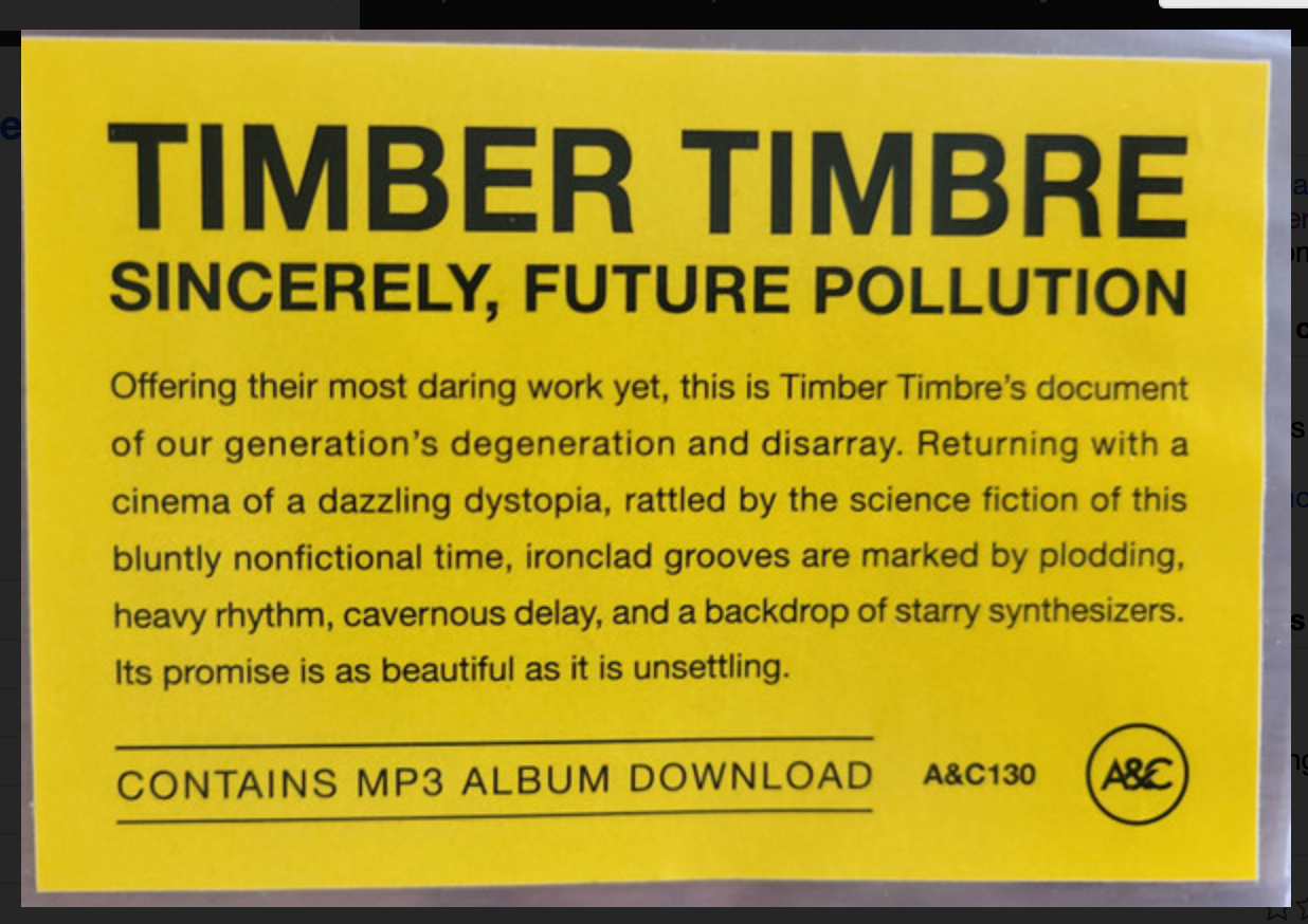 TIMBER TIMBRE - SINCERELY, FUTURE POLLUTION