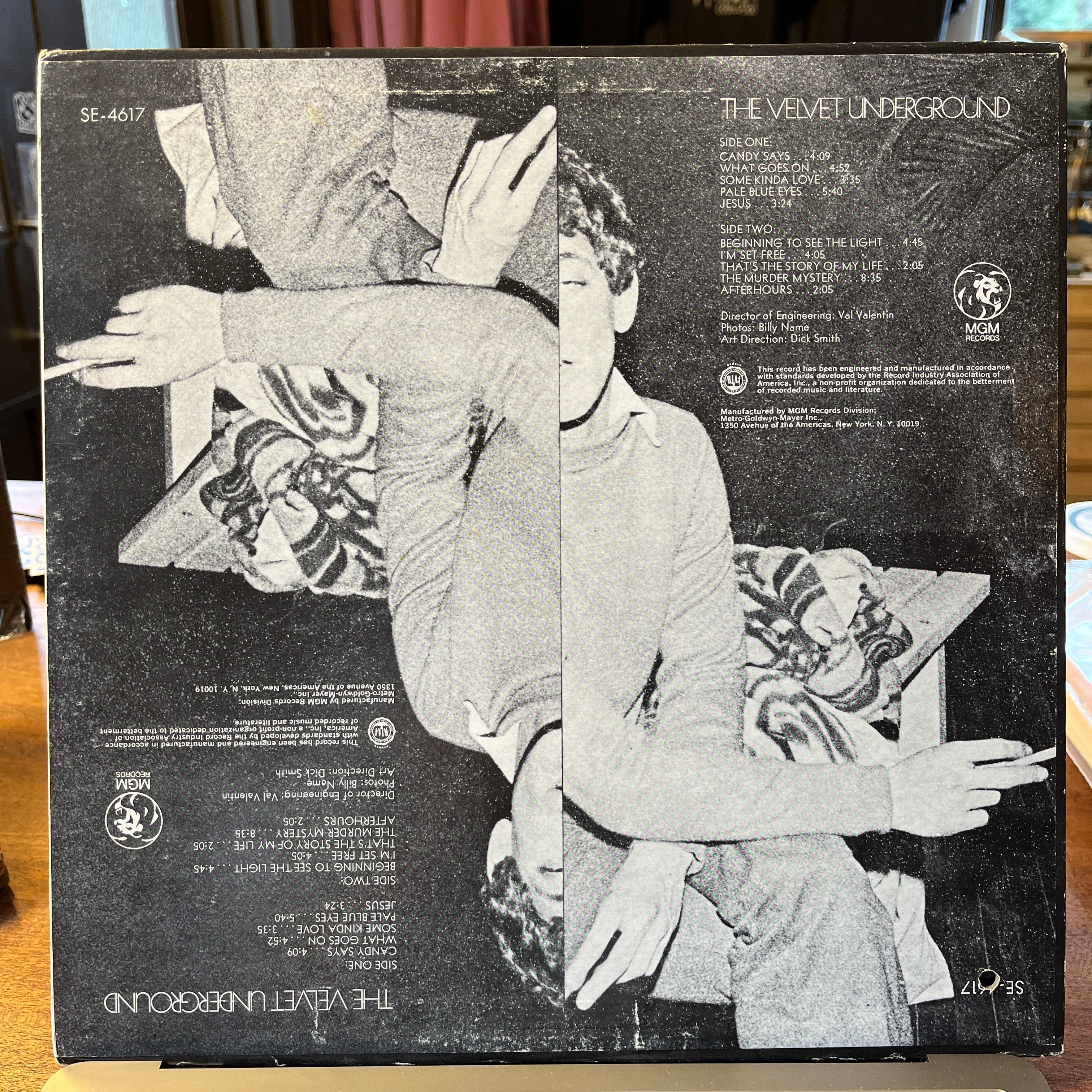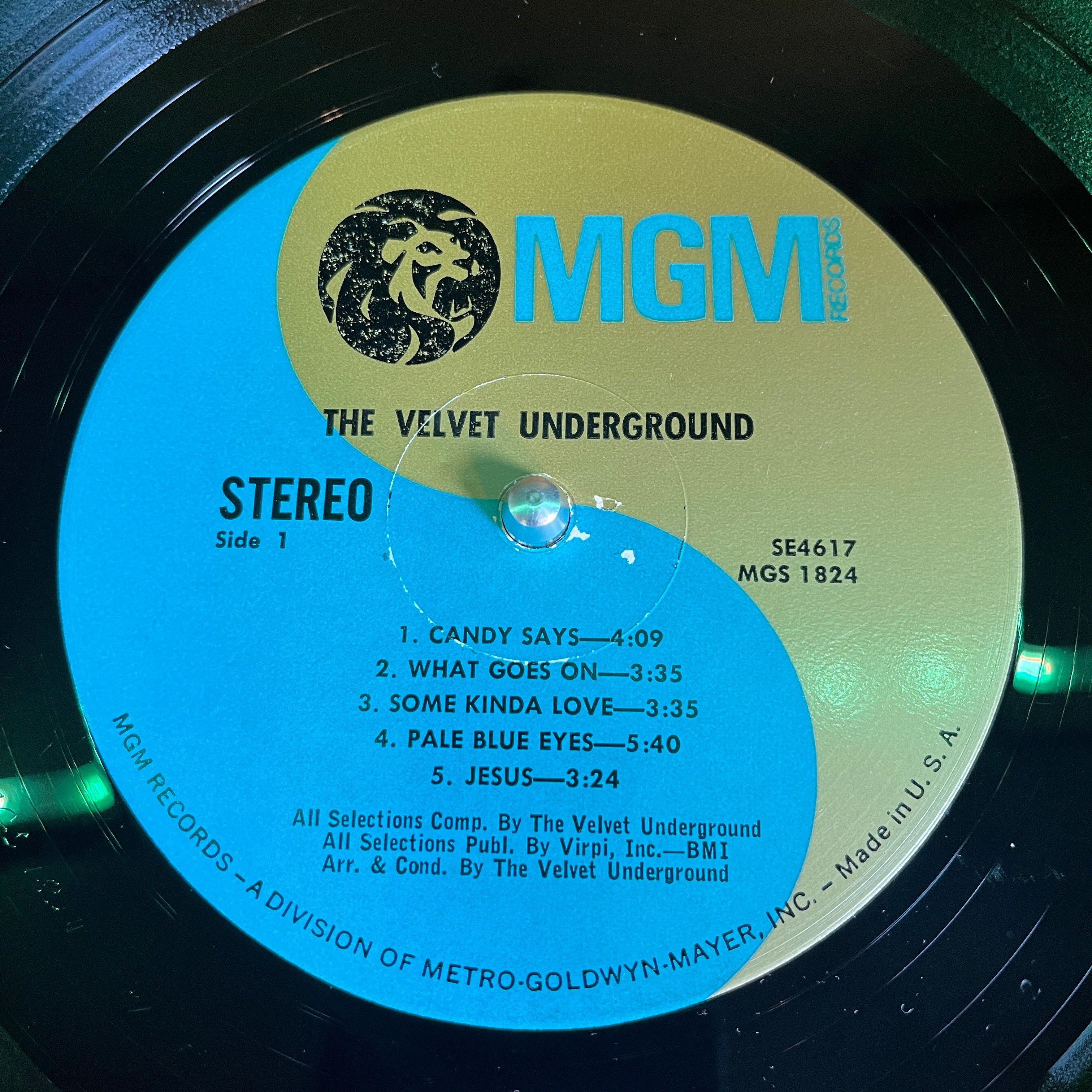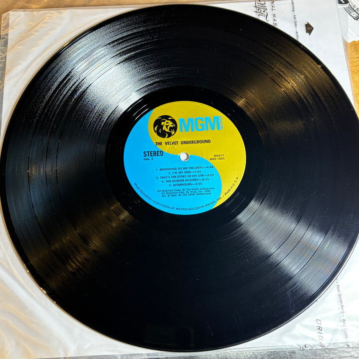 this rare gem is in great shape!! Vinyl is glossy with a few light marks. Some of the quieter tracks like Candy Says and Pale Blue Eyes do have just the faintest amount of noise. It's almost impossible not to!! Those track are super quiet. "Candy Says" has a few rotations that have a repetitive static noise for a short time, but other than that, the sound is mostly VG+ or NM quality. Cover has moderate shelf wear with light ring wear, light rubbing along edges and light creases along spine. Punch hole bottom right.